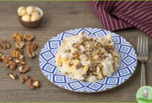 ИНГРЕДИЕНТЫ: 500 г дрожжевого теста, 300 г повидла из айвы, 150 г очищенного фундука, 1 чайная ложка тертой лимонной цедры, 1 столовая ложка маргарина. ПРИГОТОВЛЕНИЕ: Для приготовления начинки орехи нарубить, добавить повидло и лимонную…
