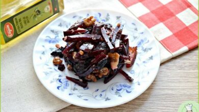 Ниже я расскажу подробнее, как приготовить селедку под шубой без селедки. Красивее всего готовить такой салат в разъёмной форме с кольцом, тогда видны все слои. К водорослям нори можно добавить тушёный баклажан для имитации текстуры селедки. Я перепробовала все возможные рецепты селедки под шубой без селедки, вариант с водорослями нори — лучший. Главное, хорошо замочить их в соевом соусе.