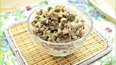 Если вам нравятся салаты с фасолью, то обратите внимание на этот рецепт. Если вы хотите сделать салат менее калорийным, то не используйте для заправки майонез, а замените его легким йогуртом. Также в салат можно добавить немного свежей зелени. О том, как приготовить салат с фасолью и печенью, вы узнаете здесь.