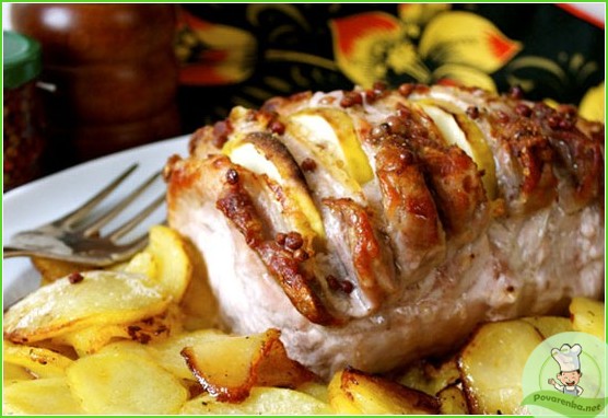 Мясо с яблоками в духовке