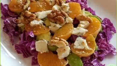 Салат из красной капусты с мандаринами и орехами