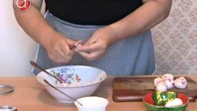 Просейте в миску муку, сделайте в центре ямку, посолите, налейте воду и замесите пластичное, не липнущее к рукам тесто. Количество муки зависит от ее влажности. Накройте его миской, пусть «отдохнет».
